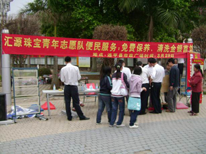 2008年3月29日,匯源珠寶公司組織志愿隊(duì)到連平縣城開展義務(wù)服務(wù)活動(dòng),受到當(dāng)?shù)鼐用竦臒崃覛g迎。