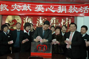 為積極響應(yīng)市委、市政府號召,發(fā)揚匯源集團“充滿愛心、勇?lián)?zé)任”優(yōu)良傳統(tǒng), 2008年2月4日上午,在賴運宏董事長的關(guān)心下,匯源集團向全體員工發(fā)出了《抗雪救災(zāi)送溫暖獻愛心倡議書》。全體匯源員工熱情高漲,展開了以“踴躍捐款、愛心大融冰”為主題的抗雪救災(zāi)、送溫暖獻愛心捐款活動。到11時30分,共捐得善款15221元,并于上午及時送到了市慈善總會。充分體現(xiàn)了匯源員工“關(guān)愛社會,奉獻愛心”的企業(yè)文化,為仍滯留在車站或旅途中的受困群眾以及受災(zāi)的群眾獻上了一份關(guān)愛與真情。