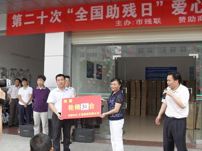 2010年5月18日,河源市匯源集團向市殘聯(lián)捐贈輪椅30臺,以幫助30名殘疾人解決行走困難。市殘聯(lián)理事長在捐贈儀式上充分贊揚了匯源集團一貫以來給予殘疾人事業(yè)的大力支持!